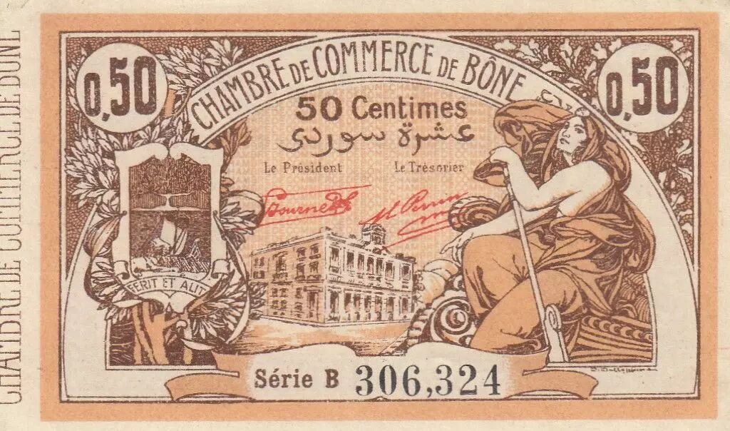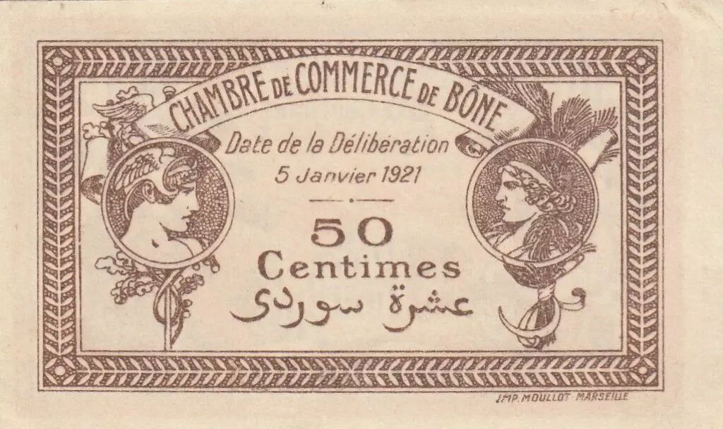 Banknote Algeria 50 Cents - Chambre de commerce of Bône - 05-01-1921 - Serial B