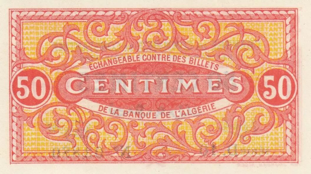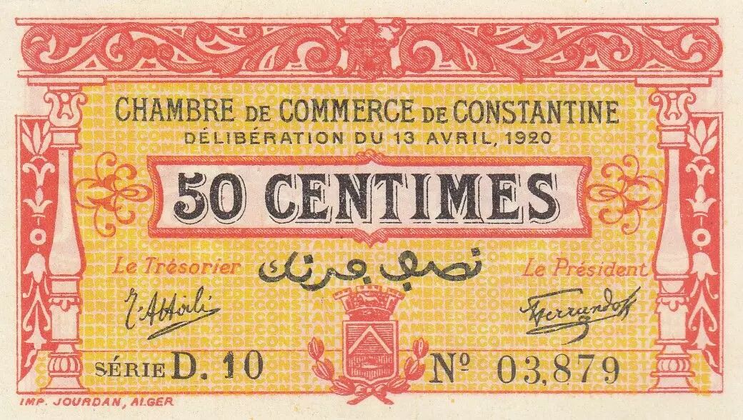 Home > > Algeria 50 Cents - Chambre de commerce of Constantine - 13-04-1920 - Serial D.10