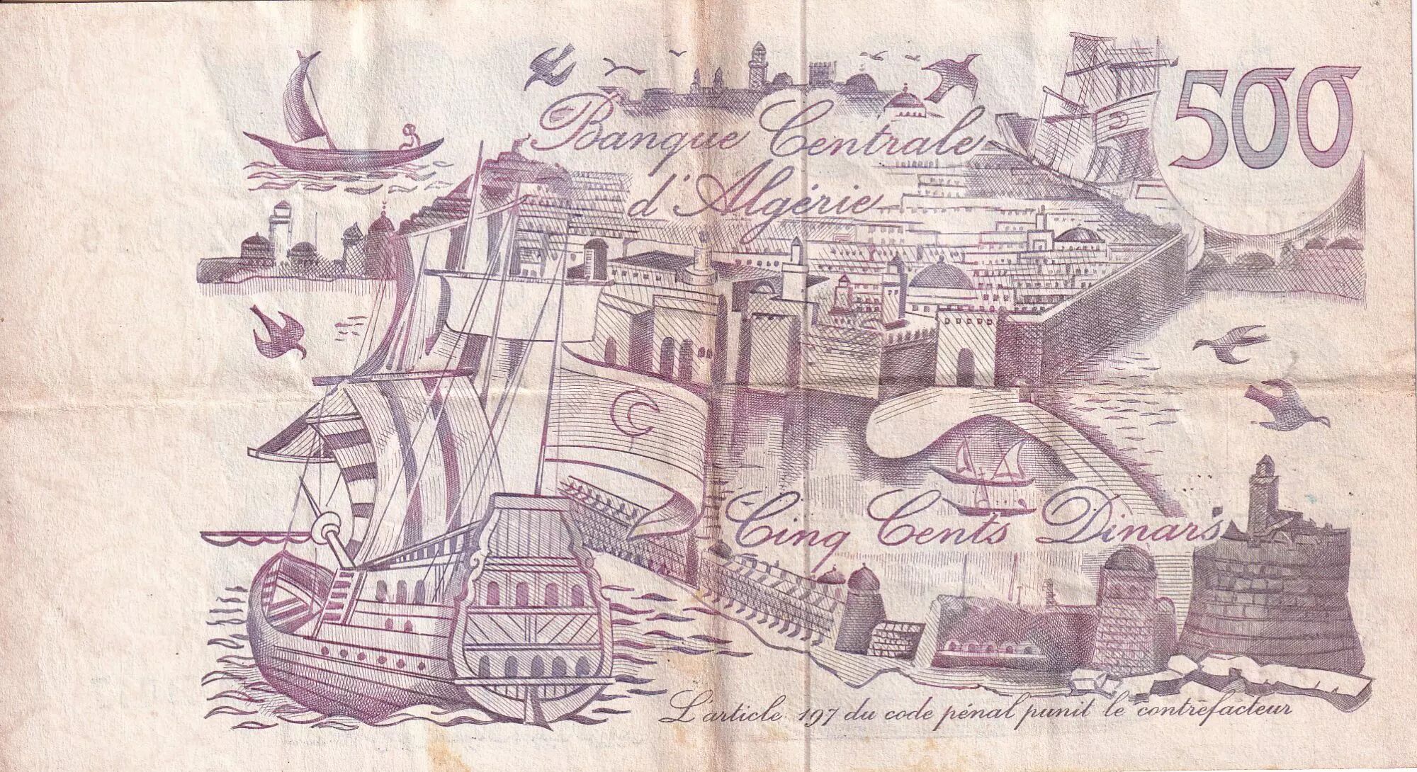 Home > > Algeria 500 Dinars - City - Galleon - 1970 - VF - P.129