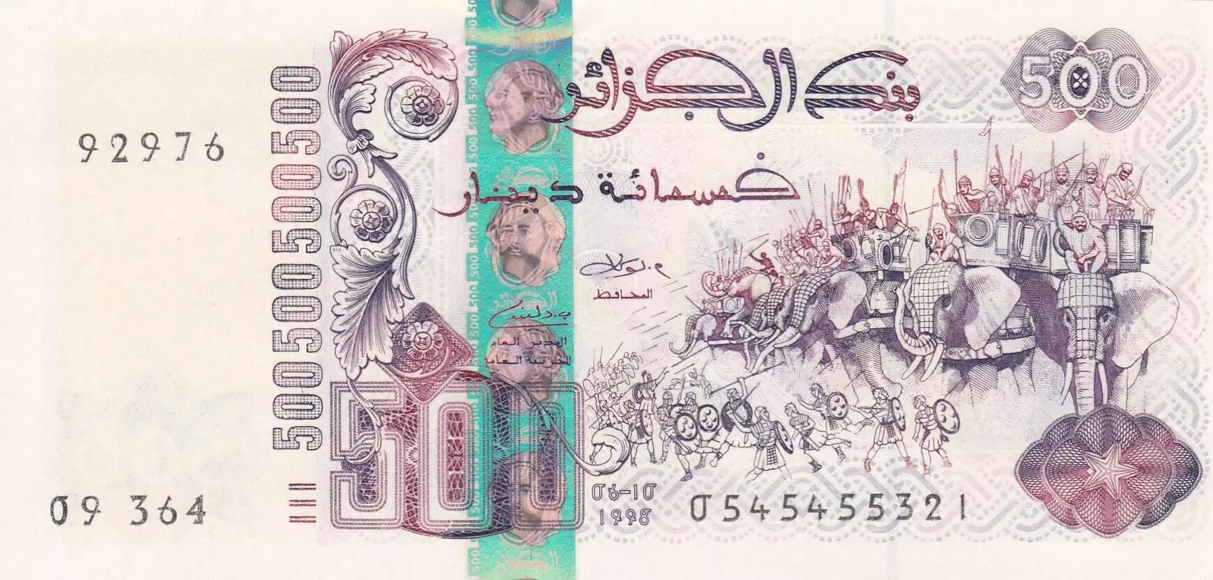 Home > World Banknotes > African Banknotes > Algeria > Algeria 500 Dinars - Hannibal's troops - Elephants - 1998 - P.141c