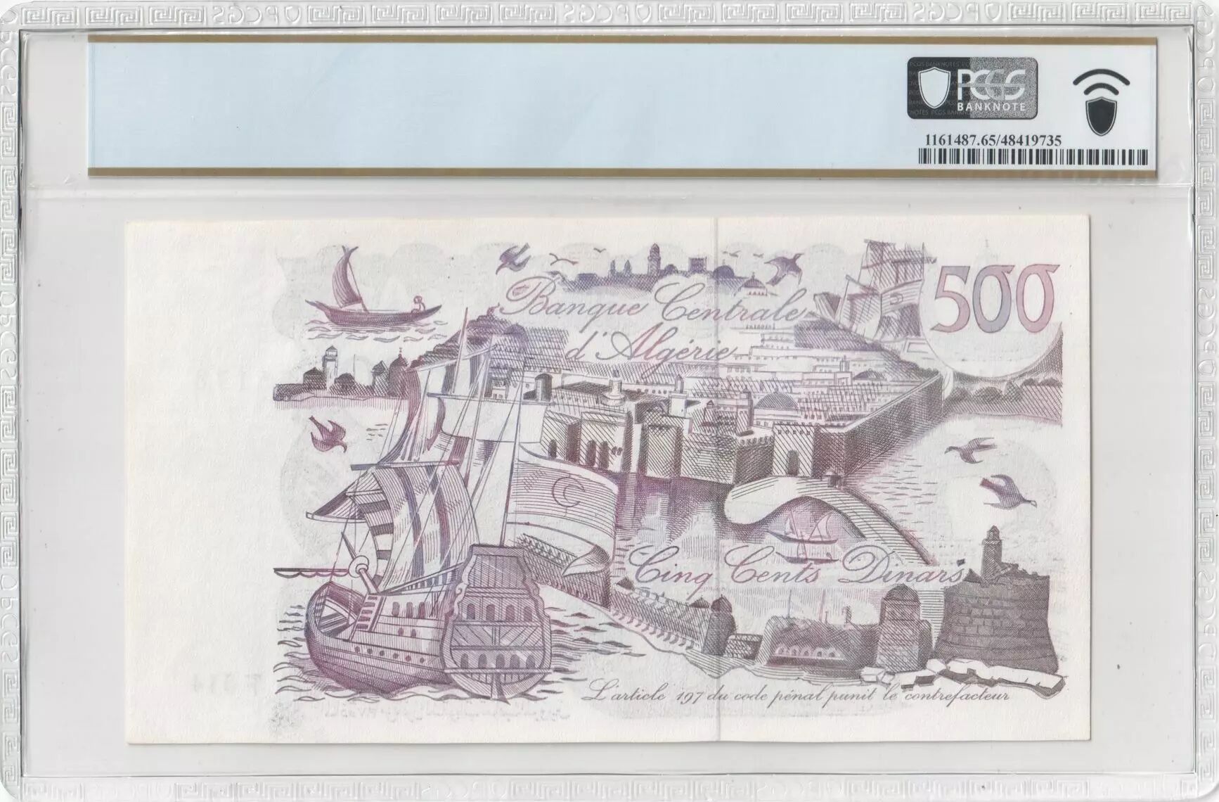 Home > > Algeria 500 Dinars - View of the city - Galleon and fortress - 1970 - - PCGS 65 PPQ
