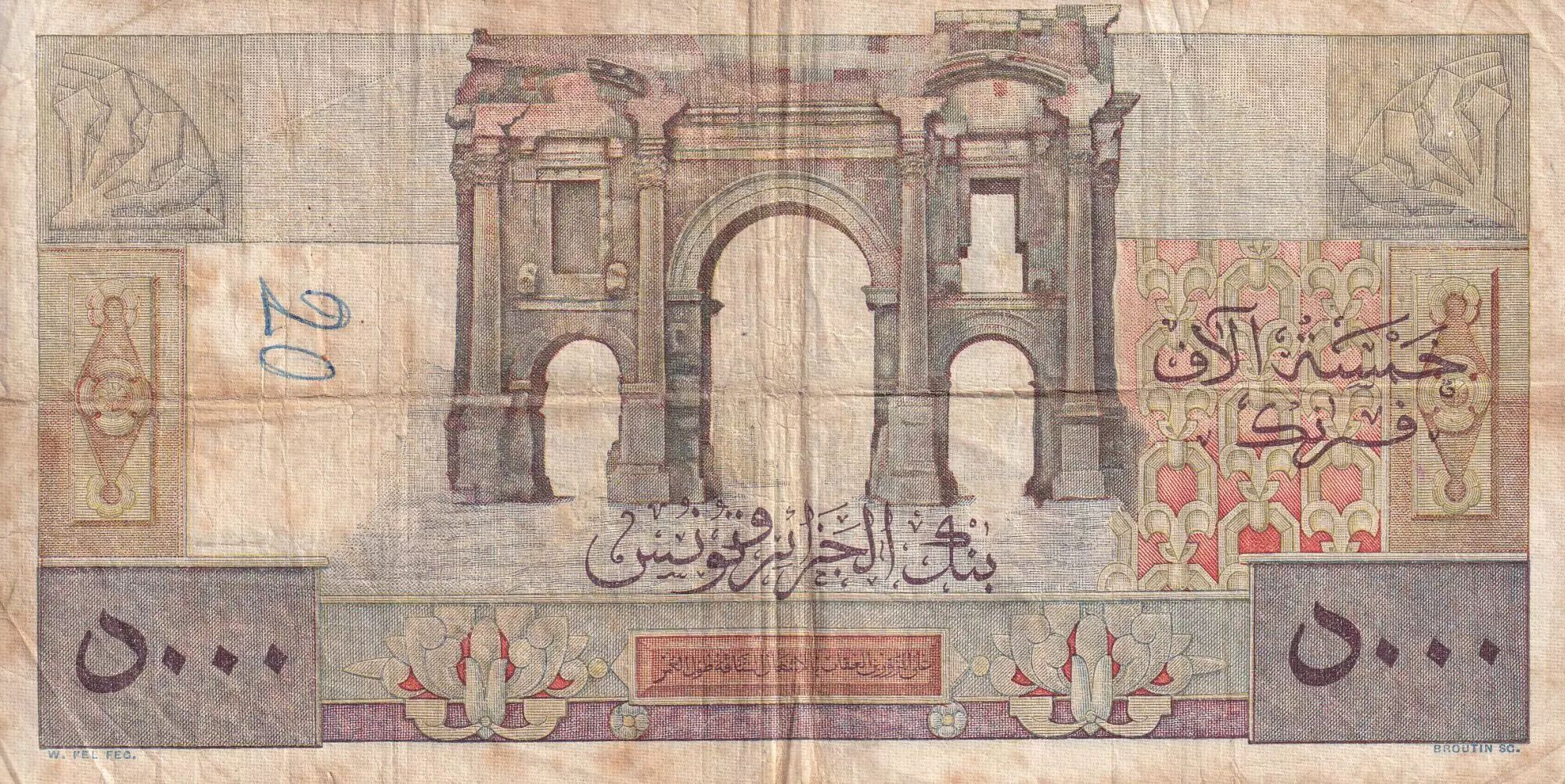 Home > > Algeria 5000 Francs - Apollo - Triomphal arch of Trajan - 10-10-1951 - Serial S.836 - P.109a