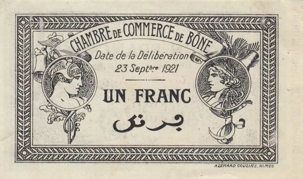 Billet Algérie 1 Franc - Chambre de commerce de Bône - 13-09-1921 - Série O
