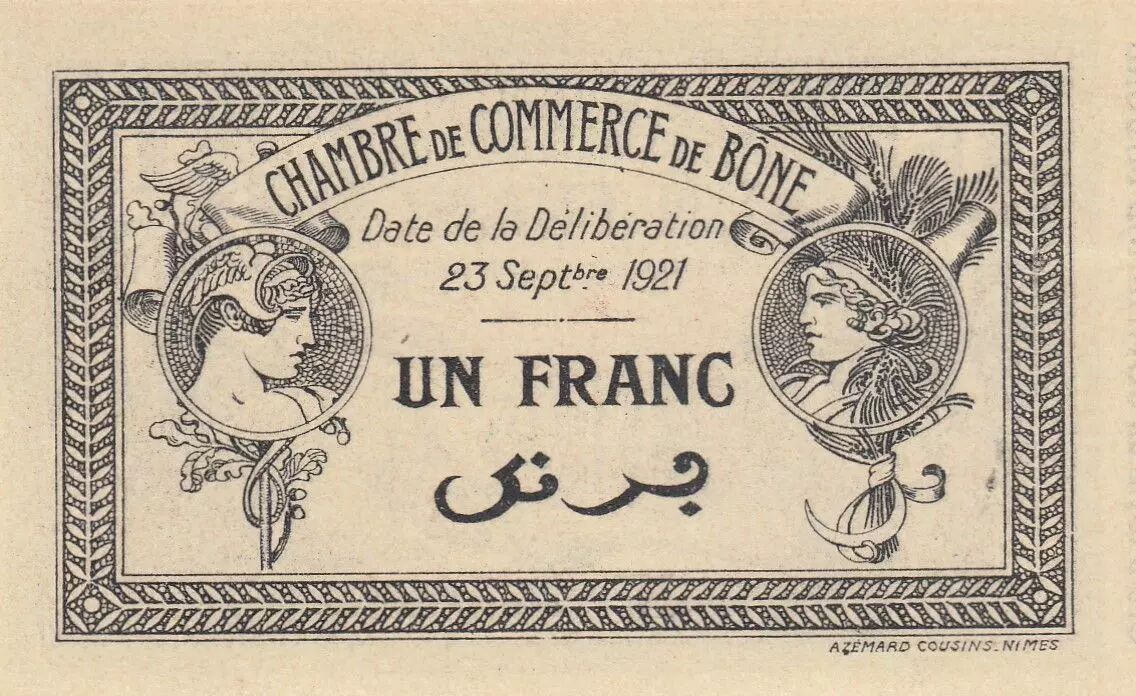 Accueil > Archivage > Algérie 1 Franc - Chambre de commerce de Bône - 23-09-1921 - Série N
