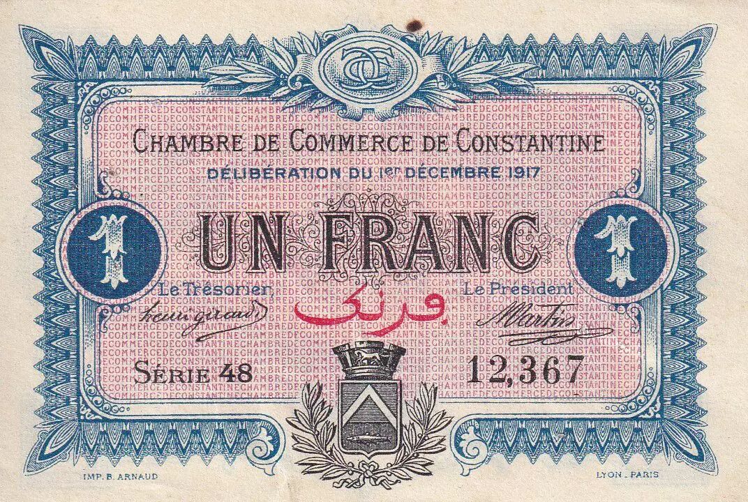 Billet Algérie 1 Franc - Chambre de commerce de Constantine - 1917 - Série 48 - P.140.15