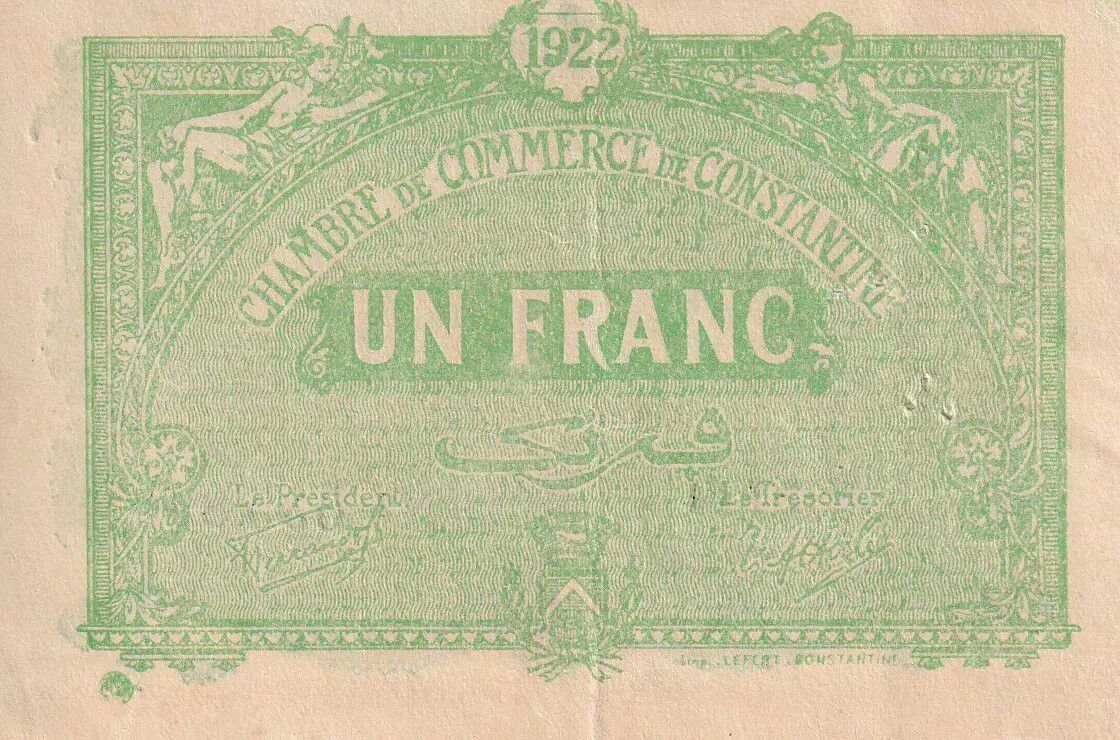Billet Algérie 1 Franc - Chambre de commerce de Constantine - 1921 - Série B.64 - P.140.34