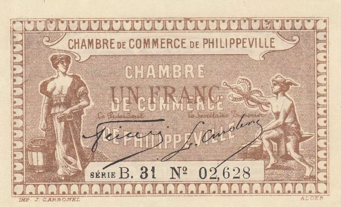 Accueil > Archivage > archivage-Billets du Monde > Algérie 1 Franc - Chambre de commerce de Philippeville - 29-12-1917 - Série B.31