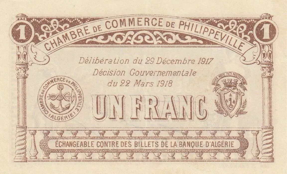 Billet Algérie 1 Franc - Chambre de commerce de Philippeville - 29-12-1917 - Série B.31