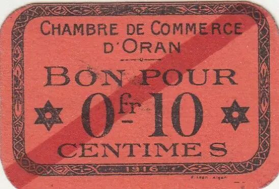 Billet Algérie 10 Centimes - Chambre de commerce d'Oran - 1916