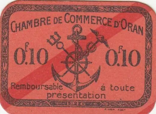 Billet Algérie 10 Centimes - Chambre de commerce d'Oran - 1916