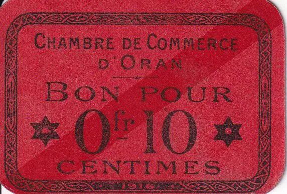 Billet Algérie 10 Centimes - Chambre de Commerce d'Oran - 1916 - NEUF - 141.49