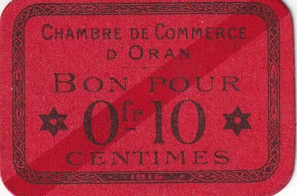 Billet Algérie 10 Centimes - Chambre de commerce d'Oran - 1916 - P.141.49