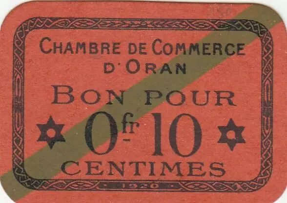 Billet Algérie 10 Centimes - Chambre de commerce d'Oran - 1920