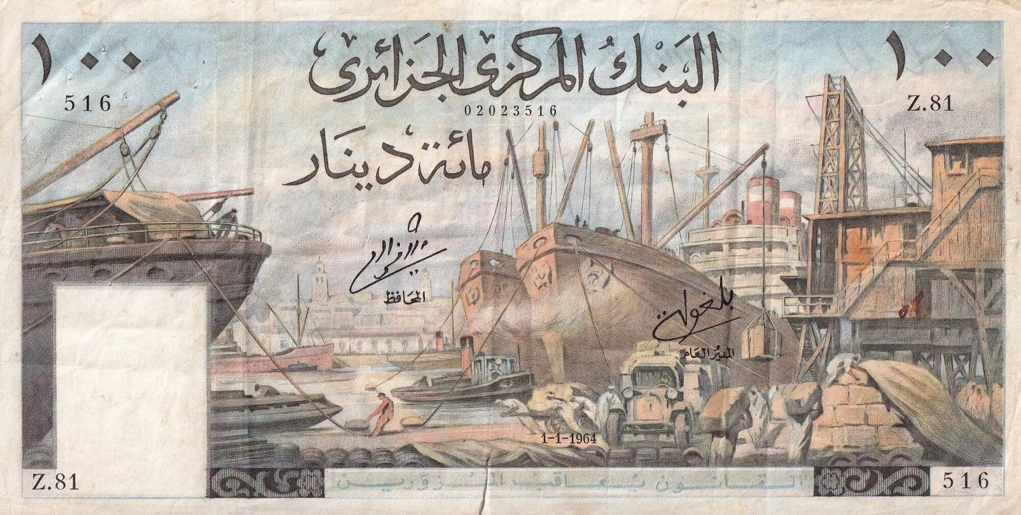 Billet Algérie 100 Dinars - Port d'Alger - 1964- Série Z.81- P.125a