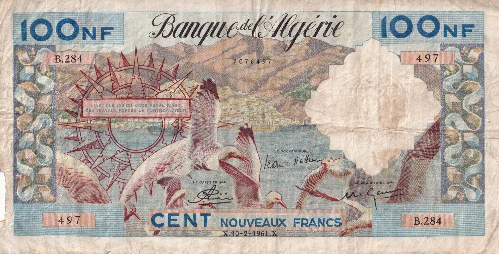 Accueil > Archivage > Algérie 100 NF - Mouettes - 10-02-1961 - Série B.284 - TB+ - P.121b