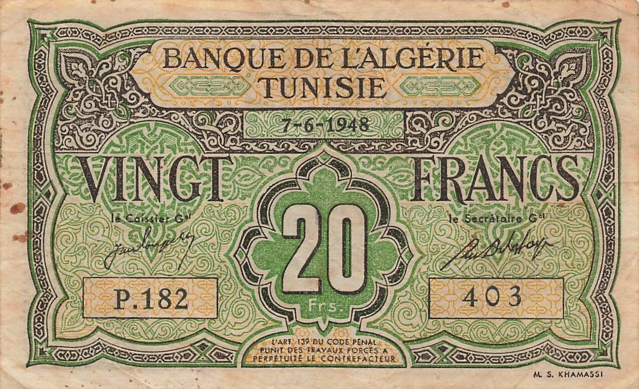 Billet Algérie 20 Francs - 07-06-1948 - P.103