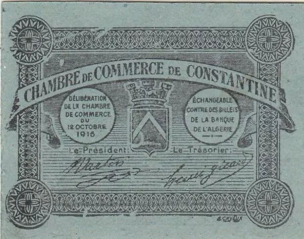 Billet Algérie 5 Centimes - Chambre de commerce de Constantine - 12-10-1915