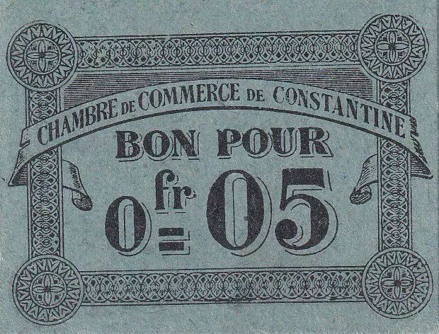 Accueil > Billets du Monde > Billets d'Afrique > Algérie > Algérie 5 Centimes - Chambre de commerce de Constantine - 1915 - P.140.46