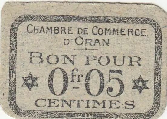 Billet Algérie 5 Centimes - Chambre de commerce d'Oran - 1916