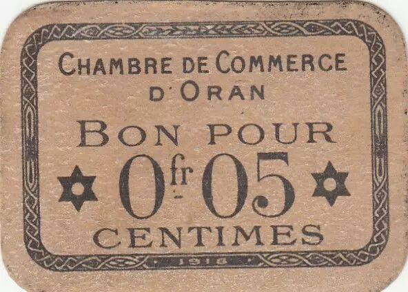 Billet Algérie 5 Centimes - Chambre de commerce d'Oran - 1918