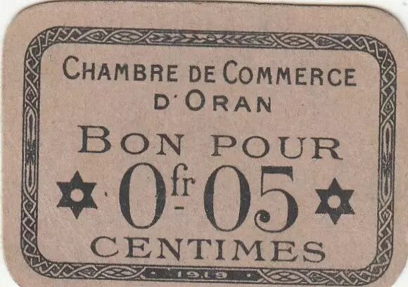 Billet Algérie 5 Centimes - Chambre de commerce d'Oran - 1919