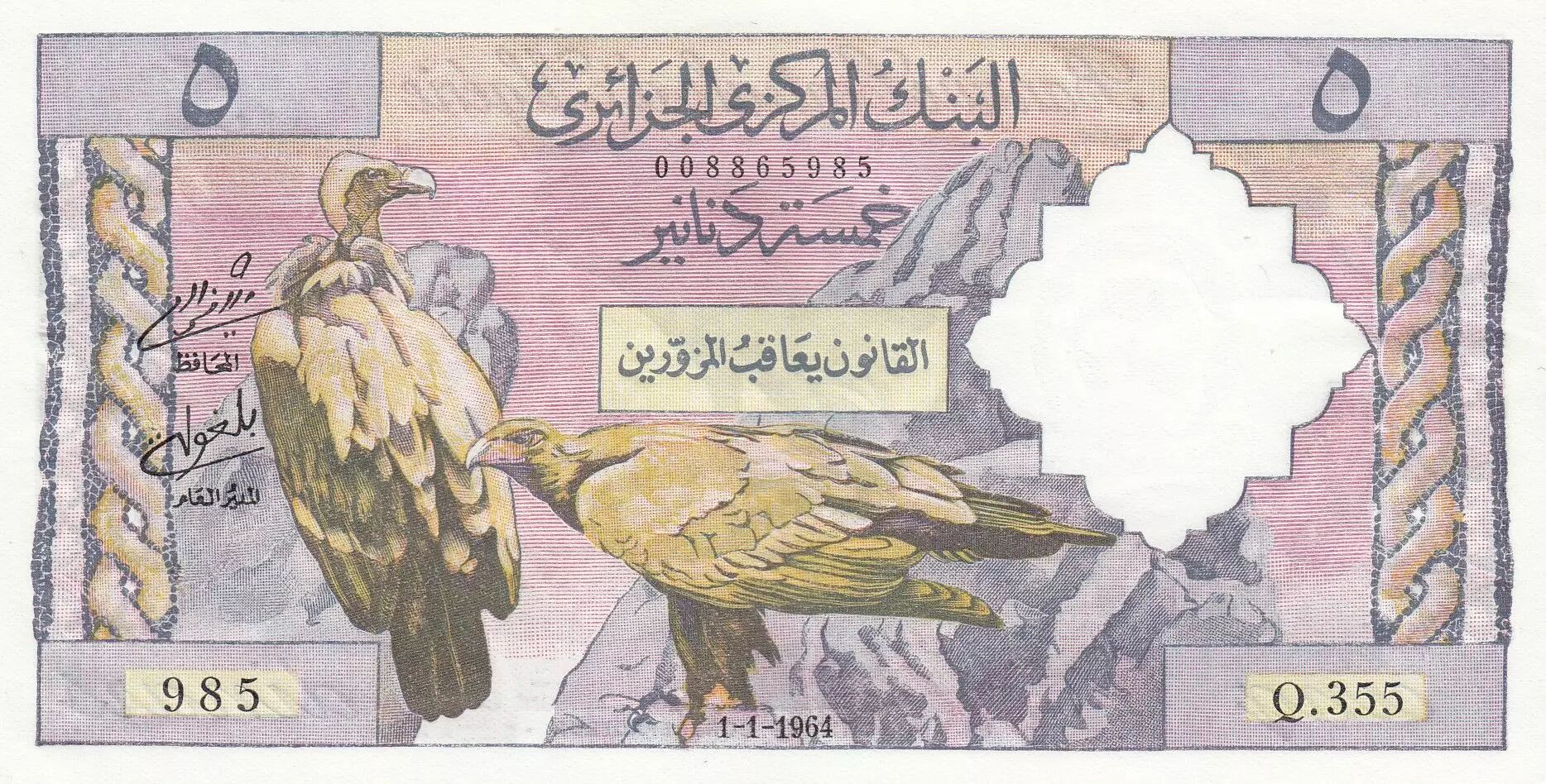 Billet Algérie 5 Dinars - Aigle - Brebis - 1964 - Série Q.355 - P.122a