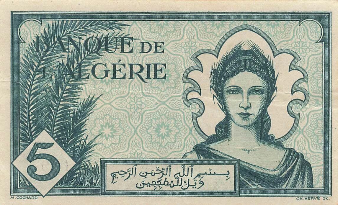 Billet Algérie 5 Francs - 16-11-1942 - P.91