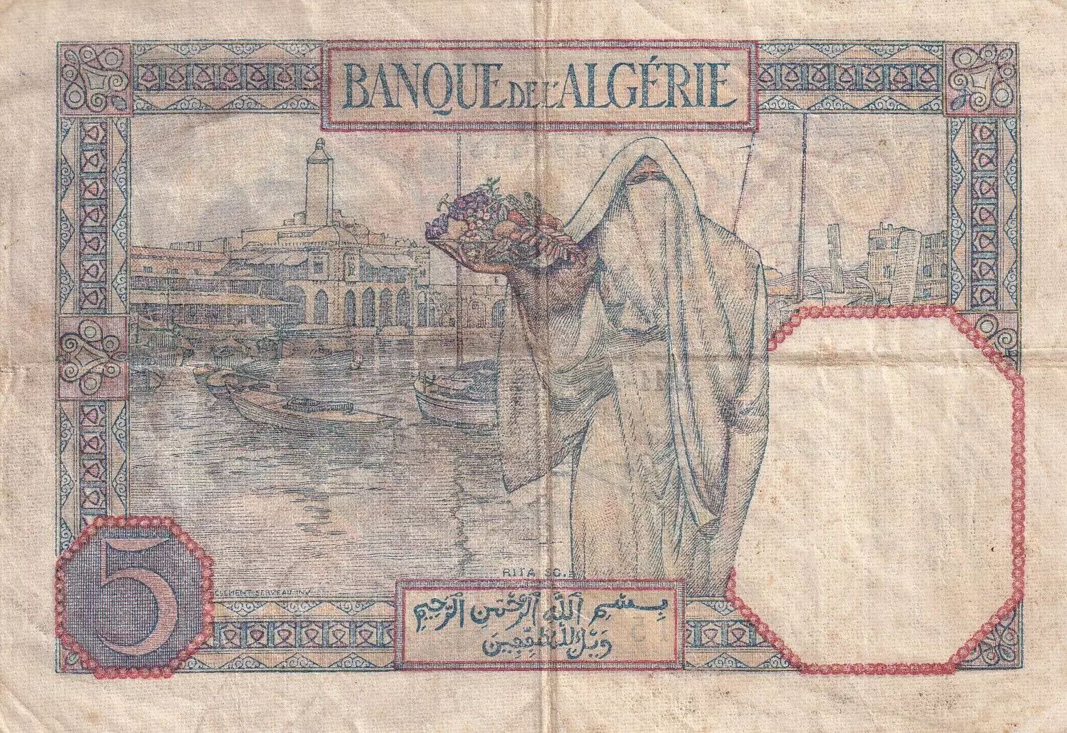 Billet Algérie 5 Francs - Jeune Femme - 11-07-1940 - Série H.4691 - P.77a