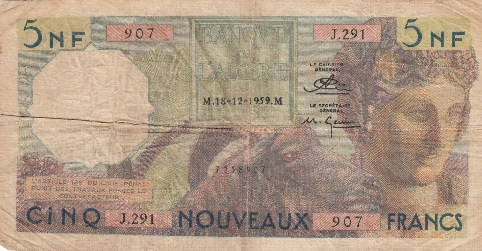 Billet Algérie 5 NF - Bacchus - 18-12-1959 - Série J.291