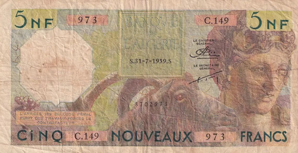 Billet Algérie 5 NF - Bacchus - 31-07-1959 - Série C.149 - TB+ - P.118