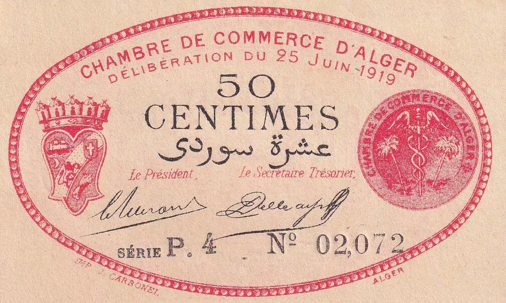 Accueil > Archivage > Algérie 50 Centimes - Chambre de commerce d'Alger - 1919 - Série P.4 - P.137-11