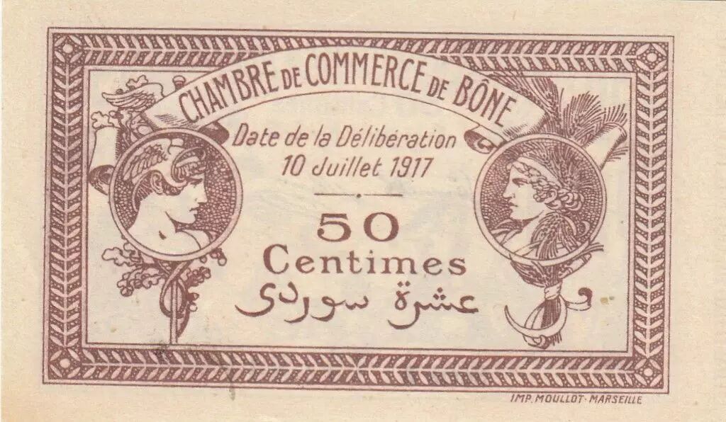 Billet Algérie 50 Centimes - Chambre de commerce de Bône - 10-07-1917 - Série B