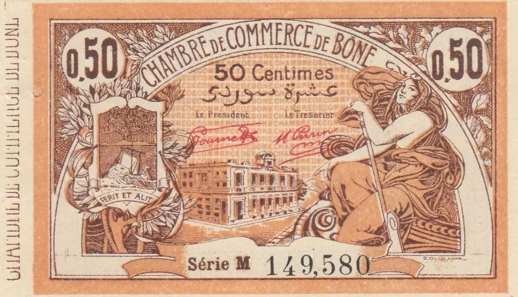Billet Algérie 50 Centimes - Chambre de commerce de Bône - 23-09-1921 - Série M