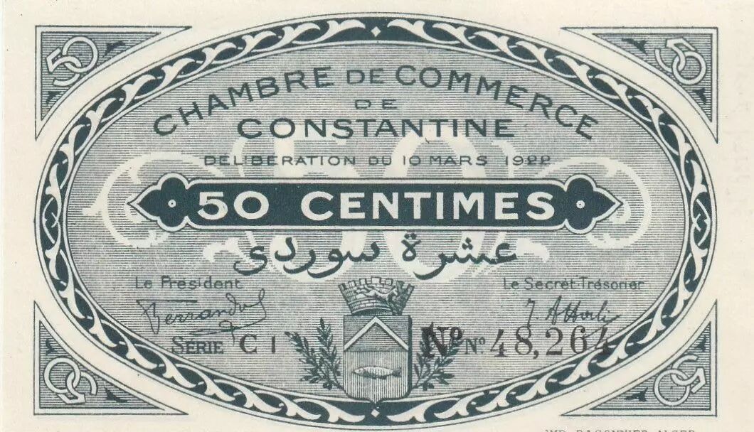 Billet Algérie 50 Centimes - Chambre de commerce de Constantine - 10-03-1922 - Série C.1