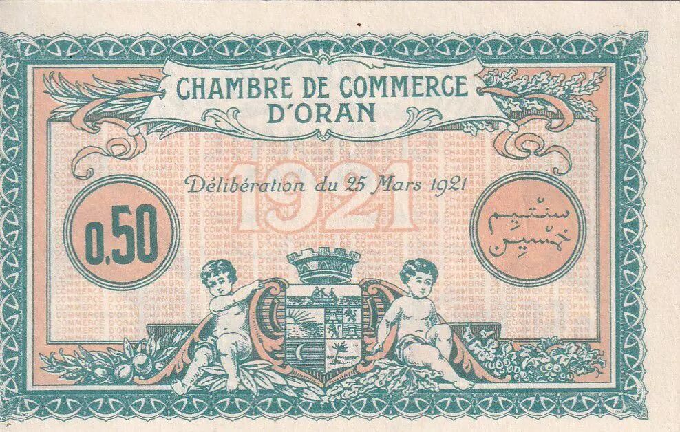 Billet Algérie 50 Centimes - Chambre de commerce d'Oran - 1921 - P.141.25