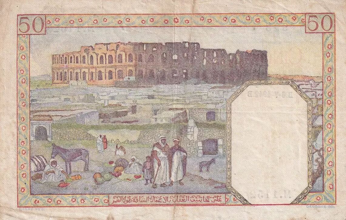 Accueil > Archivage > archivage-Billets du Monde > Algérie 50 Francs - Couple - Filigrane Tête de femme - 06-07-1942 - Série M.1152