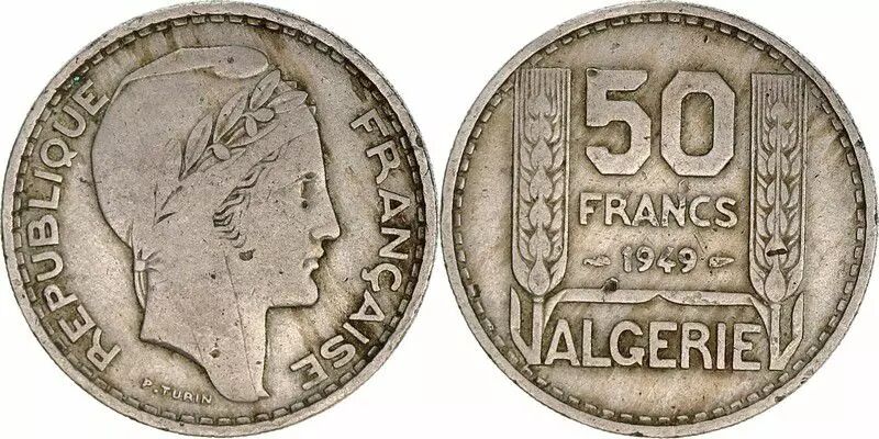 Pièce Algérie 50 Francs République Française - Turin 1949