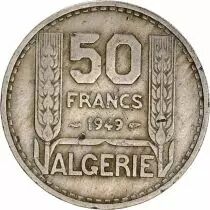 Accueil > Monnaies du monde > Monnaies d'Afrique > Algérie > Algérie 50 Francs République Française - Turin 1949