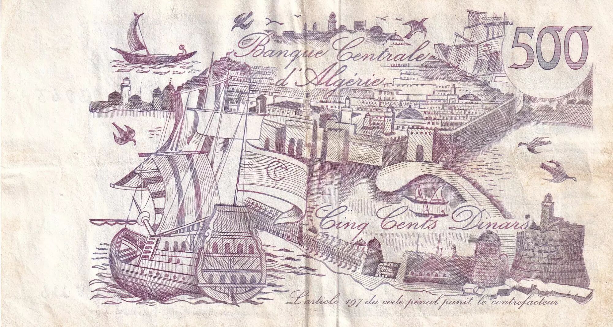 Accueil > Billets du Monde > Billets d'Afrique > Algérie > Algérie 500 Dinars - Vue de la ville - Galion et forteresse - 1970 - Série V.016 - P.129
