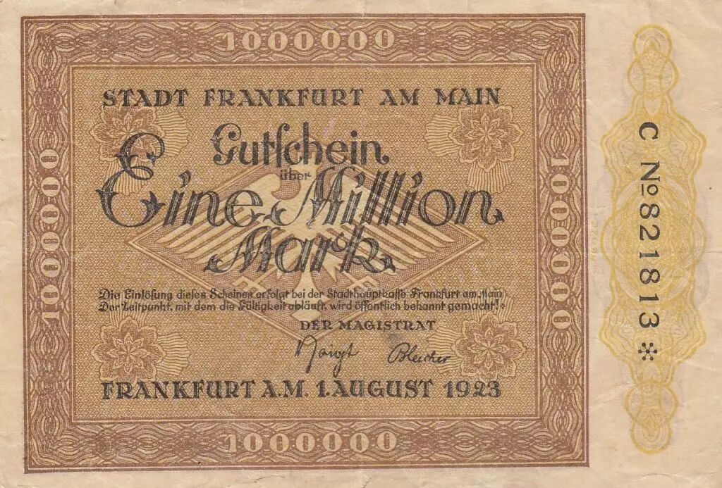 Accueil > Archivage > Allemagne 1 000 000 Mark - Main-Hessen - Série C - 1923