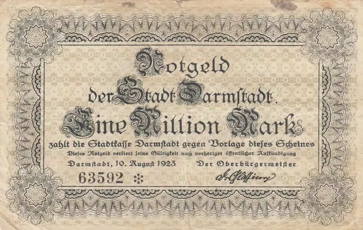 Billet Allemagne 1 000 000 mark - Ville de Darmstadt - Numéro 63592 - 1923