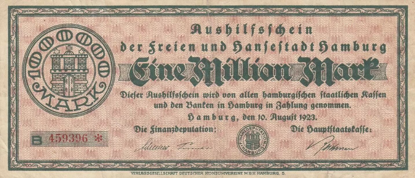 Accueil > Archivage > Allemagne 1 000 000 mark - Ville d'Hamburg - Série B - 1923
