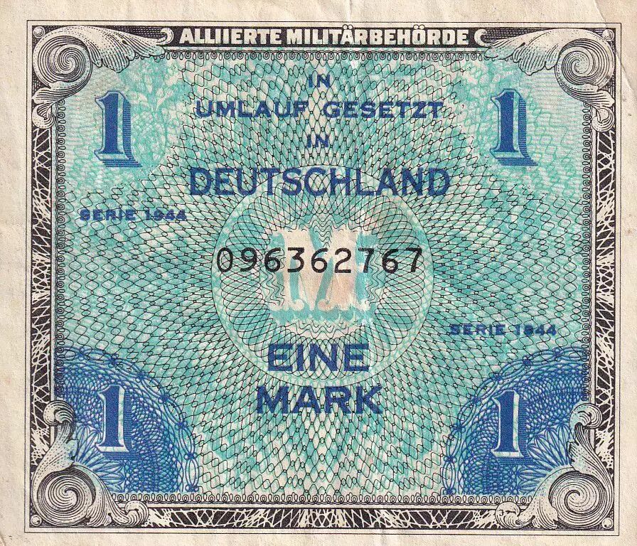 Accueil > Archivage > Allemagne 1 Mark - Impr. américaine - 1944 - 9 digit avec F - P.193a