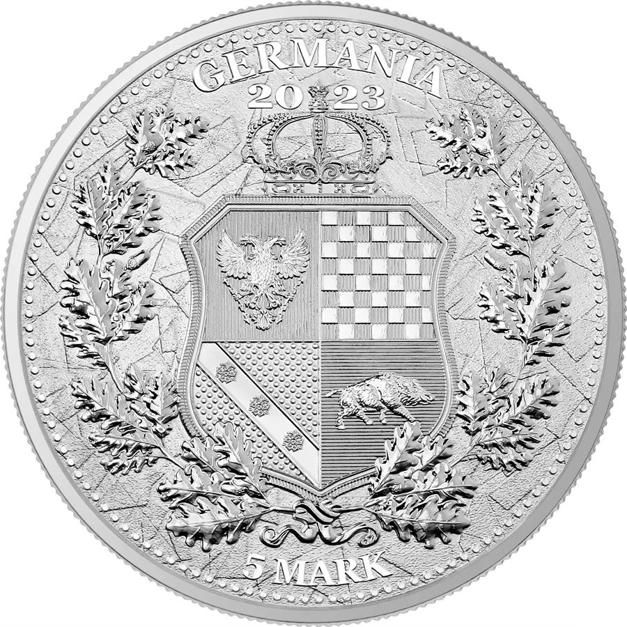 Comme dans les séries précédentes l'image au verso est le blason qui représente les principes moraux et les valeurs nobles. La Germanie était une terre historique et n'a jamais été un pays officiel c'est pourquoi nous avons décidé de créer notre propre interprétation de ses armoiries. Ses symboles et son dessin sont le fruit de notre imagination mais ils ont été créés dans le respect des règles héraldiques en vigueur.