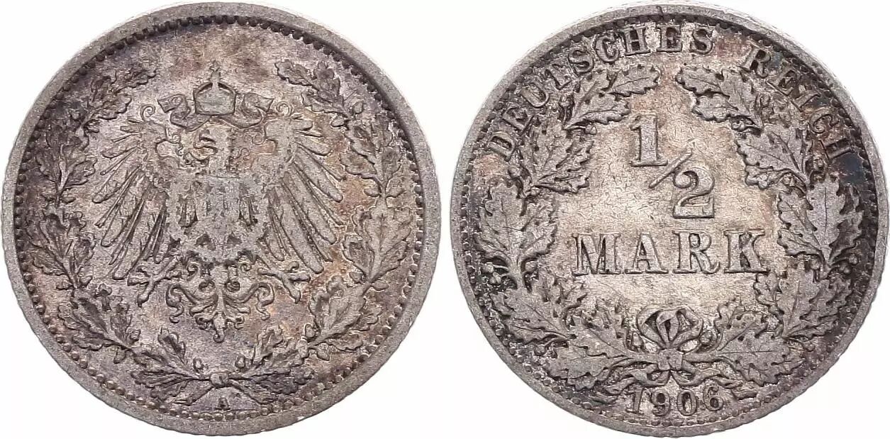 Pièce Allemagne 1/2 Mark 1906A - Aigle couronné, argent