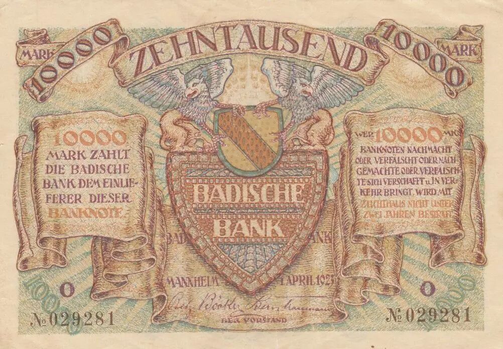 Billet Allemagne 10 000 Mark - Ville de Manheim - Série O - 1923