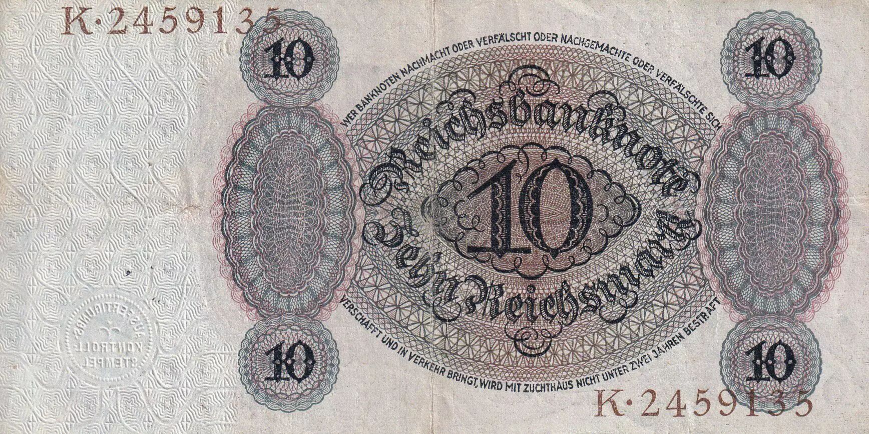 Accueil > Archivage > Allemagne 10 Mark - Portrait d'Homme - 1924 - Série K - P.175