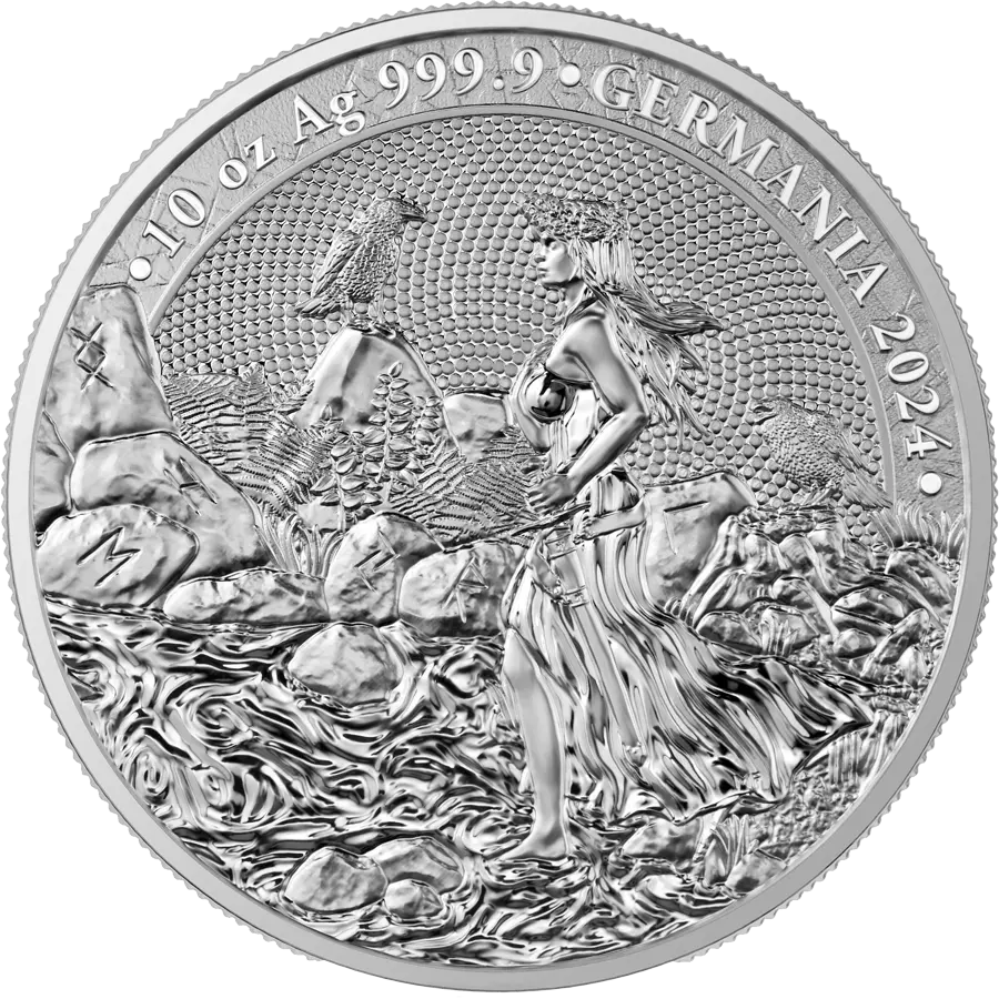 La perspective de l'avers de Germania 2024 s'élargit à nouveau avec chaque pièce de la collection - 1, 2, 10 onces et 1 kg. Cependant, l'émission de cette année présente une autre innovation : sur l'avers, les différents éléments du dessin changent.