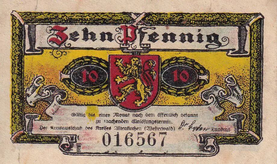 Accueil > Archivage > Allemagne 10 Pfennig - Altenkirchen - Notgeld - 1921