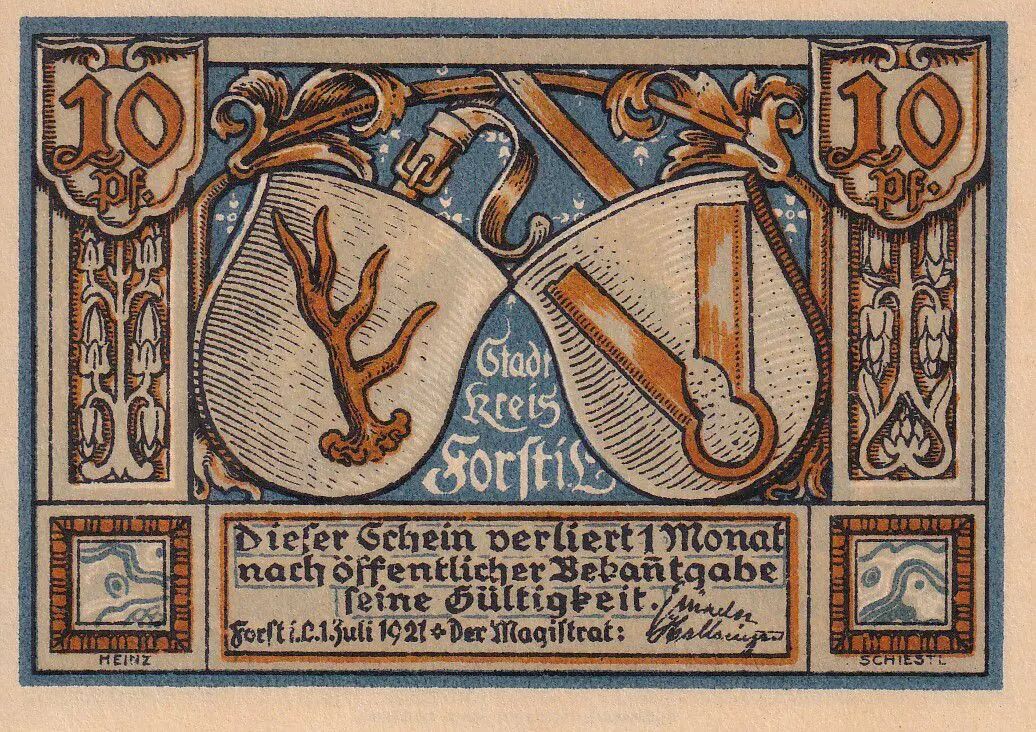 Accueil > Archivage > Allemagne 10 Pfennig - Forst (Lausitz) - Notgeld - 1921